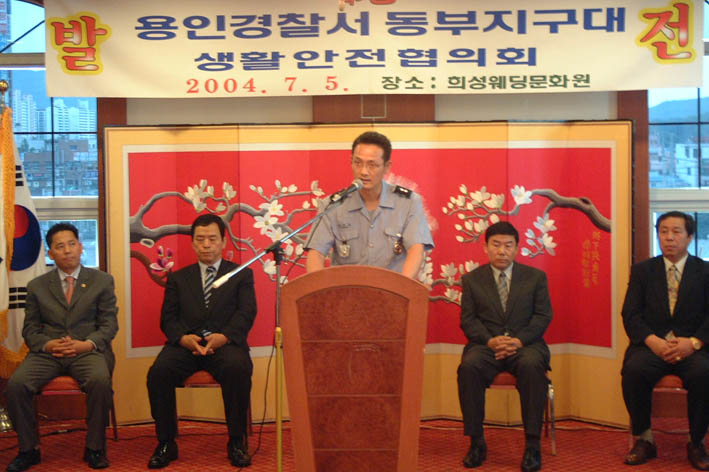 용인경찰서동부지구대(지구대장 황의춘 경감)는 지난 5일 희성웨딩문화원에서 `$$`용인경찰서동부지구대 생활안전협의회`$$`발대식을 가졌다.
