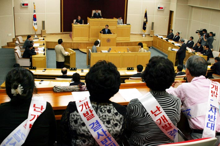 =도시기본계획상 개발예정용지로 계획된 성복지구는 개별법에 의한 난개발 방지를 위해 주민공청회를 통해 충분한 주민의견 수렴과 전문가 집단인 경기도와 건교부의 도시계획위원회가 직접 현장을 방문, 충분한 녹지공간이 확보되었는지 확인후 임상이 양호한 지역에 대한 환경성 검토 등 심도있는 심의를 통해 광교산의 녹지축을 보전했다. 자연환경이 양호한 일부지역은 개발예정용지에서 제척 또는 공원으로 결정하도록 하는 등 도시계획이 확정된 지역이다. 이렇게 확정된 도시계획에 따라 추진되고 있는 성복지구사업을 일부 성복동 아파트주민들의 요구로 변경할 경우 시의 도시계획에 대한 신뢰성과 공신력에 문제가 발생할 것으로 본다. 또한 성복동 일부 시민들의 요구대로 성복지구 도시계획을 변경할 경우, 결국은 시에서 사유지를 매입하여야 하는데 막대한 예산이 소요된다. 최소의 비용으로 최대의 효율을 올릴수 있도록 예산을 편성하고 집행해야 하는 시와 의회에서도 일부 주민들을 위해 그 막대한 예산을 투입했을 경우, 도로 등 도시기반시설 부족으로 불편을 겪고 있는 대다수의 시민들을 생각하지 않을 수 없다. 이런 시의 입장을 이해해주길 바란다.