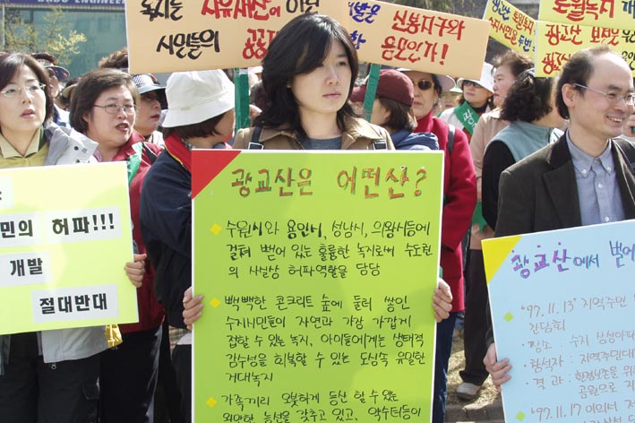 그러나 최근 광교산은 신도시 개“?전원주택개발 등으로 인해 녹지축이 훼손되는 등 심각한 환경파괴로 지자체마다 보호운동이 확산되고 있다.