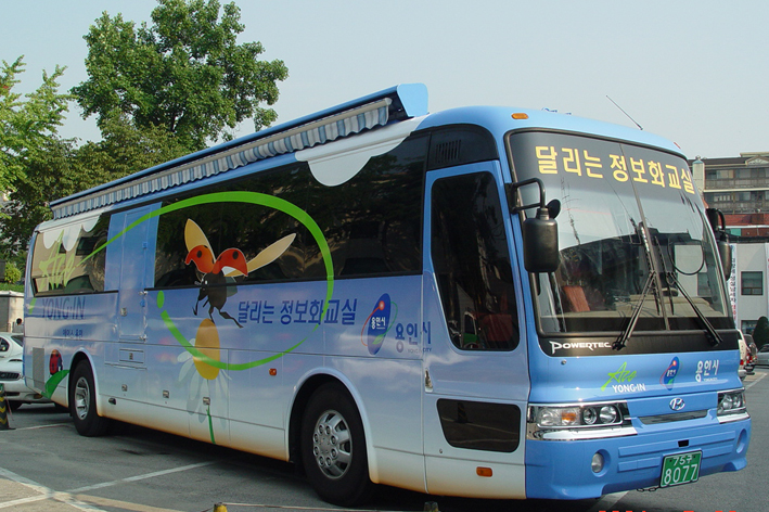 정보화교육 전용버스는 상설교육장의 접근이 어려운 노인, 장애인, 농민에게 찾아가는 정보화교육과 도․농간 정보소외계층 간 정보화격차 해소를 위해 약 3억원의 예산을 들여 도입됐다.