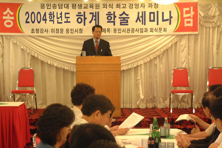 용인송담대학(학장 최동규)는 지난 29일 신갈 대벌부페에서 ‘2004학년도 용인송담대학 평생교육원 외식최고경영자과정’하계 학술 세미나 및 초청강연을 개최했다.