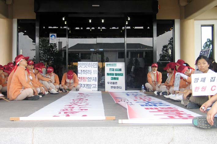 한원컨트리클럽 노조 김부영 사무처장은 “눈앞에서 폭력사태가 벌어지고 있는데도 이를 방관한 경찰들은 대체 누구를 위해 현장에 나온 것이냐”고 경찰측의 대응태세를 지적했다.