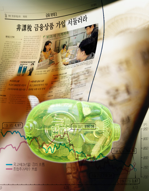 시중 은행의 정기적금 금리가 사상 처음으로 3%대로 떨어지는 등 실질금리가 `$$`마이너스 시대`$$`로 들어서면서 비과세 등의 혜택을 받을 수 있는 상품에 관심이 모아지고 있는 가운데 마땅히 투자할 만한 곳을 찾지 못한다면 은행들이 판매하고 있는 비과세상품이나 우대금리를 제공하는 한정 예금상품 등에 가입해 재테크에 나서는게 좋다고 전문가들은 조언한다.