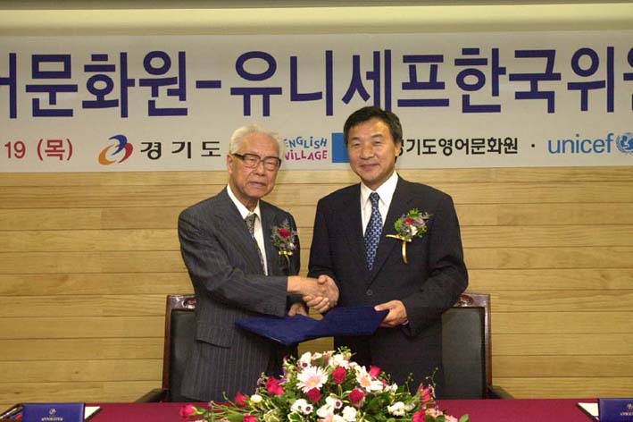 경기도영어문화원과 유니세프(UNICEF) 한국위원회는 19일 경기영어마을 안산캠프에서 손학규 경기도지사(경기도영어문화원 이사장)와 현승종 유니세프 한국위원회 회장이 참석한 가운데 업무협약을 체결했다.