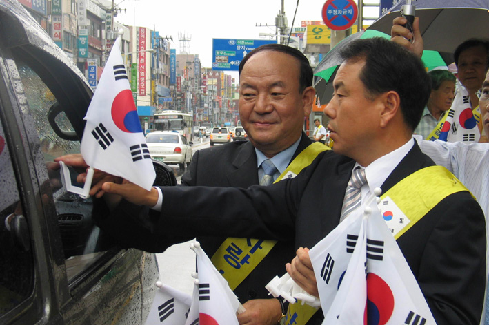 민족통일 용인시협의회는 박 회장과 용인시의회 이우현 의장, 경기도의회 신재춘 의원 등 50여명이 참석한 가운데 진행된 이날 행사를 통해 농협용인시지부 앞 상․하행선 도로를 지나는 차량을 대상으로 태극기 3000개를 무료 배포했다.