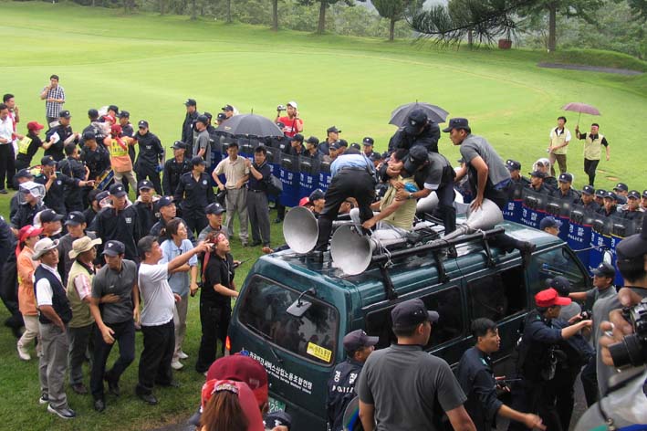 이에 대해 경찰서 관계자는 “당시 상황은 명백한 업무방해 행위로, 골프경기를 하던 이용객들의 권리까지 침해했기 때문에 연행을 피할 수 없었다”고 말했다.