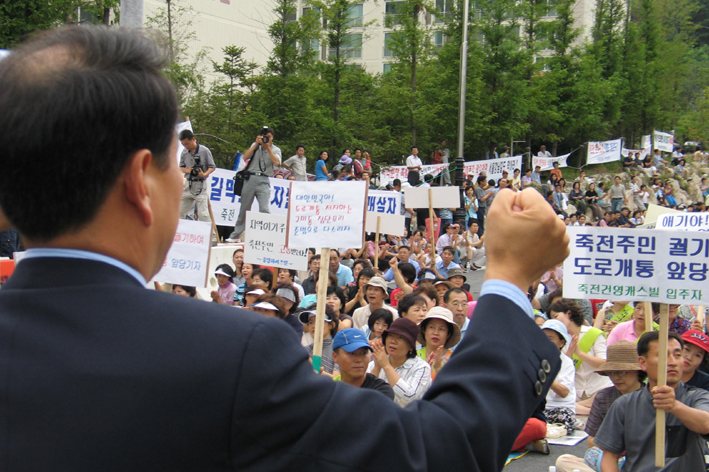 죽전∼구미동 도로연결 비상대책위원회가 주관한 이번 집회에서 조재영 비대위 공동대표는 “이 도로는 반드시 연결될 것”이라며 “그러나 분당 주민들이 계속해서 도로접속을 방해해 개통이 늦어지면 죽전 주민들은 물론 이 길을 이용할 수 있는 수많은 사람들이 피해자가 된다”고 말했다.