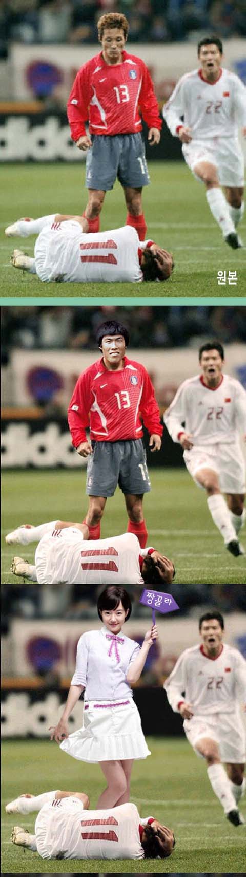 2003년 12월 동아시아선수권대회 중국전에서 거친플레이로 일관한 중국의 공격수를 때려 눕히고 분노의 찬 눈길을 보내고 있는 이을룡선수의 강한 모습에 네티즌들이 패러디로 열광하고 있는 것이다.