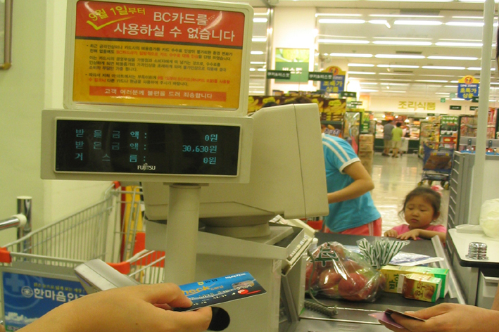 신세계 이마트가 지난 1일부터 비씨카드의 수수료 인상에 대해 가맹점 해지 대응으로 인해 고객들로부터 비씨카드를 받지 않고 있다. 또 이마트는 지난 3일 저녁 비씨카드만 받지 않는다고 발표, 수수료를 올릴 계획인 KB카드와 LG카드, 삼성카드 결제거부 우려는 일단락됐다.