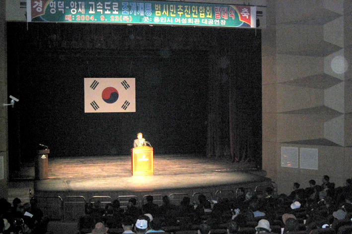 지난 23일 용인시 여성회관 대강당에서 이정문 용인시장과 이우현 용인시의회 의장, 우태주 경기도의회 의원을 비롯한 지역인사 및 주민들 1000여명이 참여한 가운데 `$$`영덕양재고속도로 조기개통 범시민 추진연합회(이하 범추연 회장 신태호)`$$` 발대식을 가졌다.