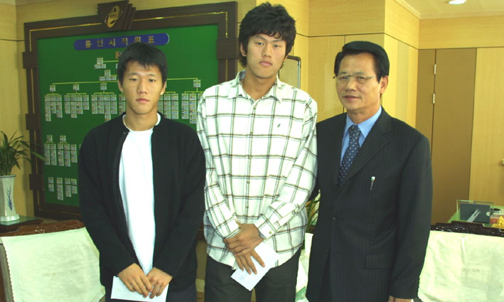 이정문 용인시장은 지난 15일 ‘2004년 아시아청소년선수권 대회’에서 우리나라를 우승으로 이끈 백승민·정인환 선수를 격려했다.