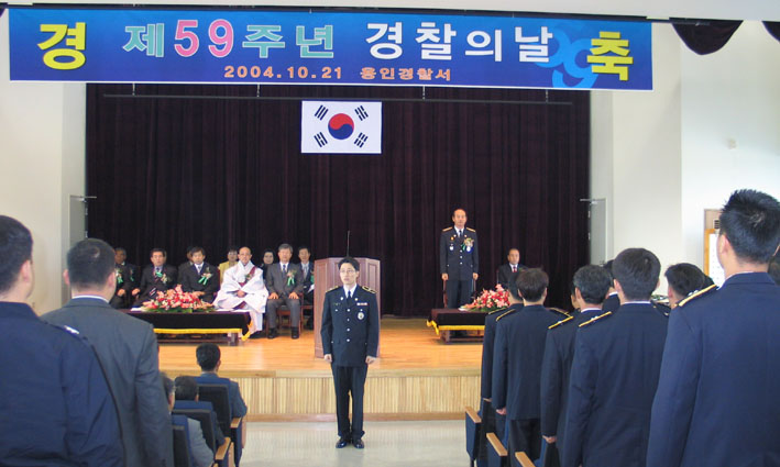 용인 경찰서(서장 이재영)는 21일 오전 경찰서 강당에서 용인시의회 이우현 의장과 이재영 서장을 비롯한 등 내빈 50여명과 과장 및 지구대장 등 전 직원이 참석한 가운데 제59주년 경찰의 날 기념행사를 가졌다.
