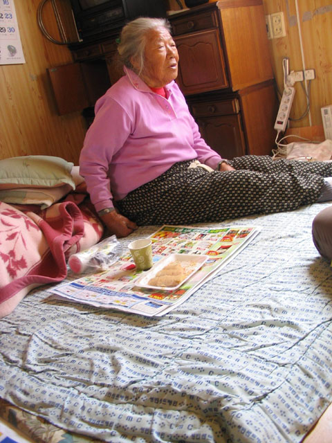 "며칠전만 해도 낮에는 빛을 쬐일려고 밖에 나왔는데 이제는 햇빛이 있어도 밖이 더 춥네. 어여 들어와. 바닥에 앉으면 아가씨가 엉덩이가 차가워지니까 이불위에 앉아"라며 할머니 온기로 덮힌 자리를 기자에게 내어준다.