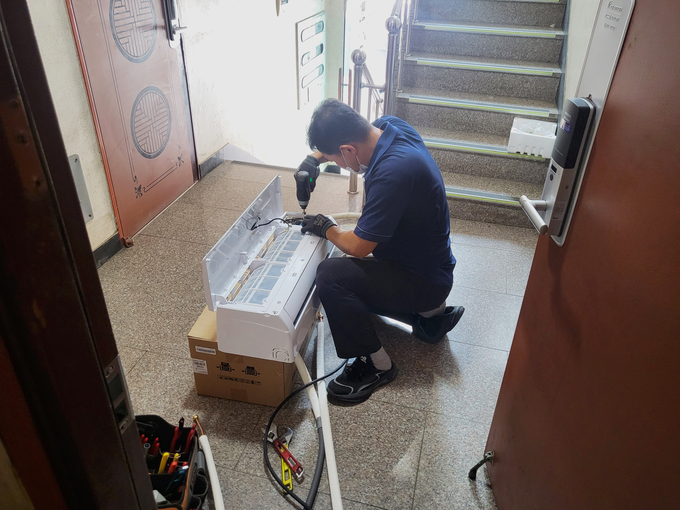 에어컨을 설치하는 모습