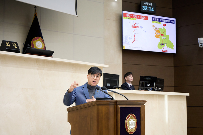 김병민 시의원(민주당·구성·마북·동백1·동백2동)은 지난달 26일 열린 제297회 용인시의회 제2차 정례회 제3차 본회의 시정질문에서 경강선 연장과 중부권광역급행철도(JTX) 추진이 중복되어 보이며 정책 혼선이 크다고 비판했다.