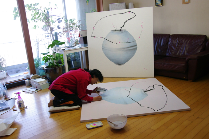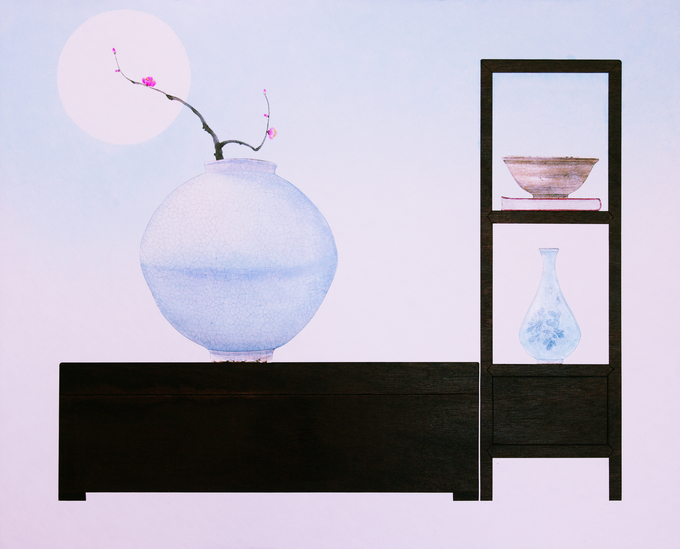 최근 작가는 일본 오사카 동양도자박물관을 찾아, 과거 도둑에 의해 300조각으로 부서졌다가 눈물겨운 수리 과정을 거쳐 복원된 달항아리를 세밀하게 카메라에 담아왔다. 깨진 파편들을 기어코 다시 이어 붙인 그 치열한 상흔을 화폭에 재현해 낼 다음 작업은 그 자체로 또 다른 경이로움을 예고한다.