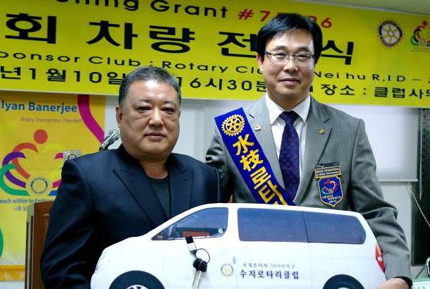 지난 10일 국제로타리 3600지구 수지로타리클럽(회장 윤석구) 사무실에서는 (사)곰두리봉사회 용인시지회(회장 한광선)에 차량을 전달하는 행사가 열렸다.