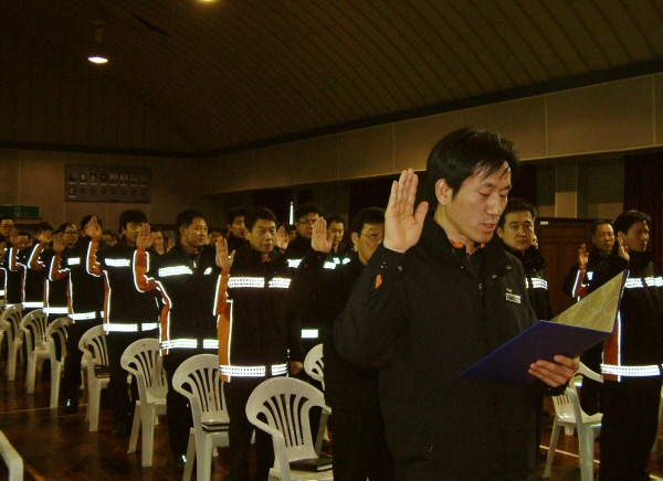 용인소방서(서장 전광택)는 지난 6일 3층 대회의실에서 소방공무원 130여명이 참석한 가운데 소방공무원 스스로 안전관리 업무에 충실히 임해서 한 건의 사고도 발생시키지 않겠다는 결의를 다지는 ‘무사고 365일 실천결의대회’를 개최했다.