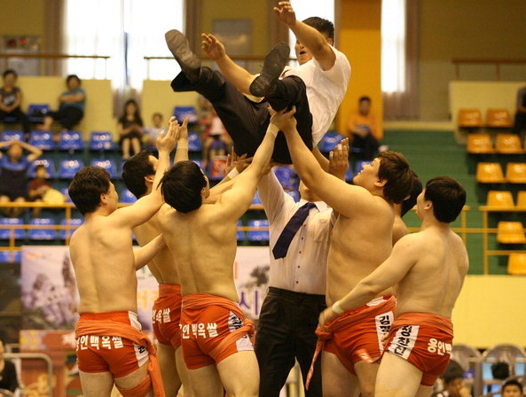 용인백옥쌀은 김택권 선수가 결승 첫째판서 장수한우 최기복 선수를 잡채기로 제압하고 승기를 잡은뒤 최준영 선수가 둘째판서 정진환 선수를 끌어치기로 모래판에 뉘여 2―0으로 앞서 나갔다.