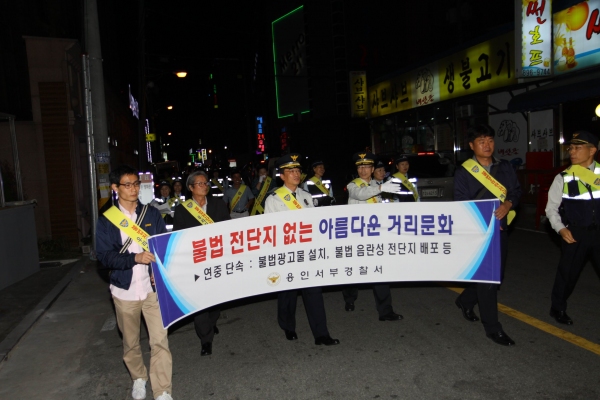 용인서부경찰서는 추석 명절 전인 지난달 26일 수지 상업지역 일대에서 ‘불법 음란전단지 근절 깨끗한 거리조성’을 주제로 대대적인 캠페인을 벌였다.