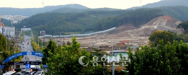 ▲ 수도권정비계획심의위원회가 용적율 상향 등을 골자로 한 역북지구 계획 변경안 승인을 보류해 사업 진행이 불투명해 졌다. 부지조성 공사가 한창인 역북지구 모습. |