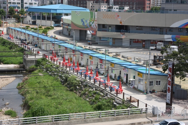 ▲ 지난 2008년 금학천 정비사업에 따라 종합운동장 인근으로 옮겨 자리잡은 포장마차 모습. |