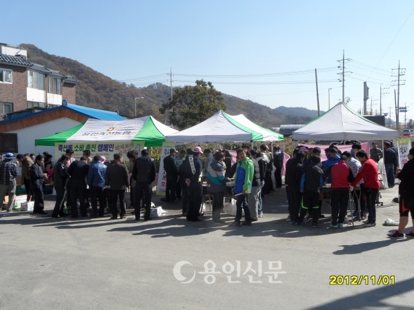 용인축산농협은 백암면 전통시장 장날인 지난 1일 축협 백암지점 앞에서 축산물 시식 행사를 진행했다.