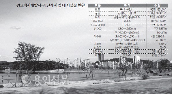 광교지구 개발사업 면적 1130만 4823㎡ 중 용인지역이 차지하는 면적은 135만 2879㎡로 약 12%수준이다. 이 지역에 들어서는 주택 및 계획인구는 3674세대에 9180여명이다.