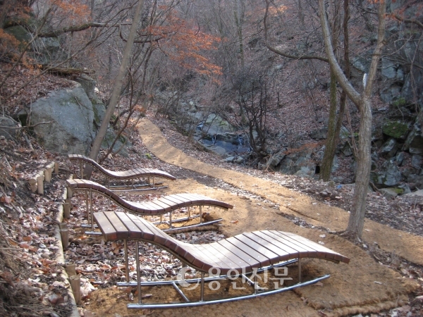 지난 9월부터 공사에 착수 숲길과 계곡을 정비하고 목교, 삼림욕대, 평상, 도서함 설치, 방향성 수종(수수꽃다리)과 허브식물(리아트리스) 식재 등을 완료했다. 자연경관을 감상하고, 산림욕대에 누워 하늘을 바라보며, 평상과 정자에서 쉬어가고, 숲 속에 설치된 도서함에서 책을 뽑아 읽는 등 여유를 즐길 수 있다.