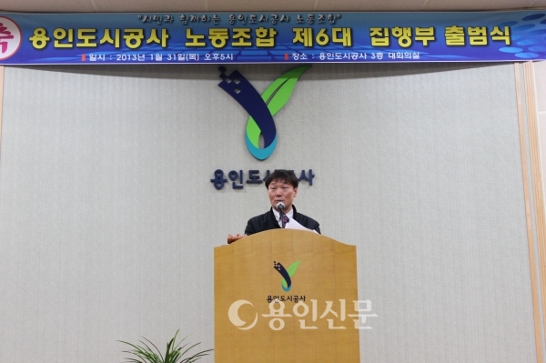 용인도시공사 노동조합 제6대 집행부 출범식이 지난 31일 열렸다. 이날 행사에는 김민기 국회의원과 도시공사 유경 사장을 비롯해 지역 정치인 및 공사 임·직원 200명이 참석했다.