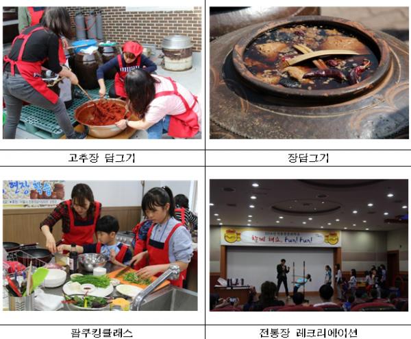체험교육은 장 담그기 체험뿐만 아니라 친환경 농산물을 이용해 음식을 만드는 ‘팜쿠킹클래스’, 즐거운 놀이를 통해 전통장을 더욱 가깝게 느낄 수 있는 ‘전통장 레크리에이션’ 등 다양한 프로그램으로 구성됐다.