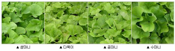 '2008-1-1' 계통은 잎 크기가 작고 포기당 잎 수가 263개 정도로 많다. '2007-15-1' 계통은 잎 크기는 중간 정도이며 포기당 잎 수가 200개 정도로 많다.