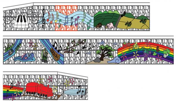 벽화는 통일열차를 형상화한 시안과 나룻배마을을 형상화한 시안 두 가지가 그려지며, 통일부와 농림축산식품부, 남북하나재단, 농협중앙회, 고대사회봉사단 로고와 사인이 들어간 타일이 부착된다.
