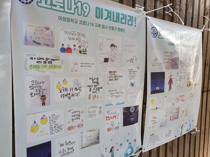 [용인신문] 어정중학교(교장 민관기)는 지역사회와 함께 코로나19로 인한 어려운 시기를 극복하자는 응원 메시지를 담은 엽서를 제작해 학교 인근에 게시하는 캠페인을 진행했다.