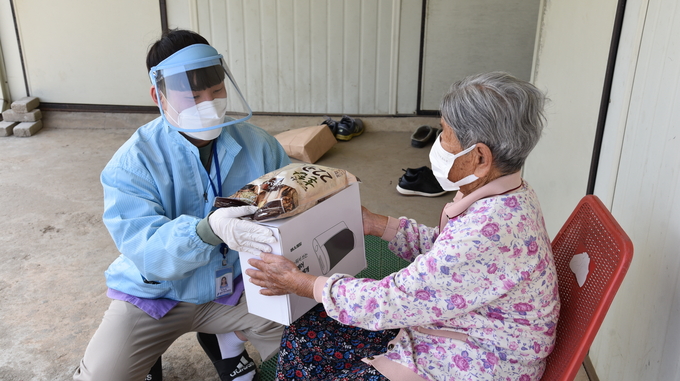 최근 코로나19로 가정에서만 지내게 되면서 심신이 지친 어르신들을 위해 안부 전화와 함께 정서 지원을 위한 새싹 키트를 제공한데 이어 지난 20일에는 지역을 연계한 후원 물품도 전달했다.