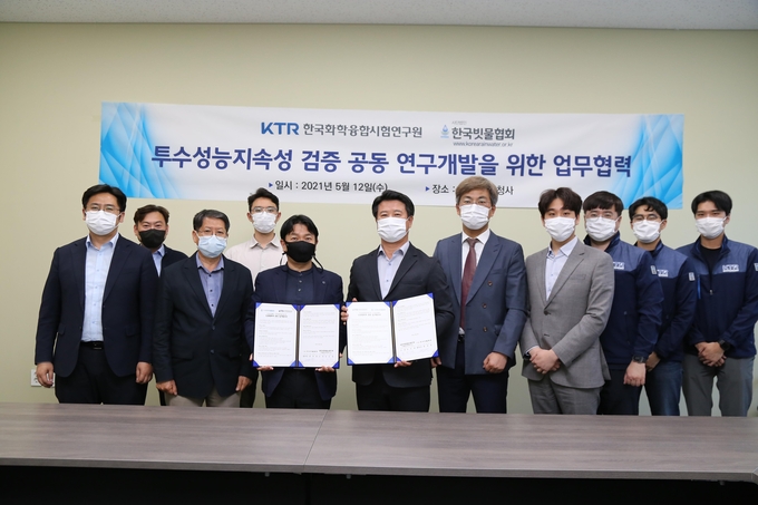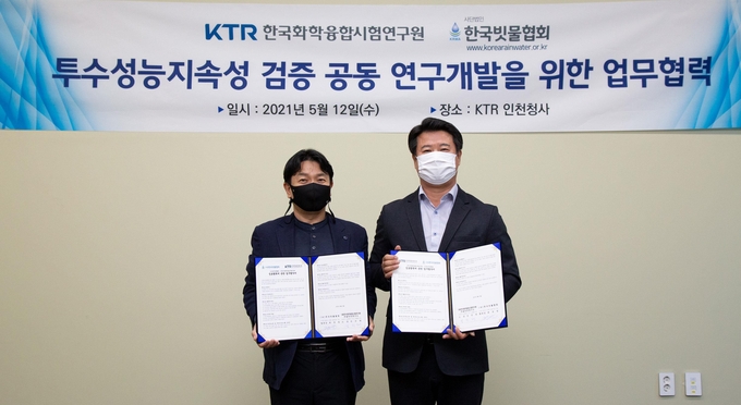 지난 12일 KTR 건설안전연구소(인천소재)에서 진행된 상호협력을 위한 업무협약식을 통해 한국빗물협회 최경영 회장은 “새로운 방식의 투수성능지속성 검증시험 시행을 위해 의미있는 한걸음을 내 딛었다”고 평가했다.