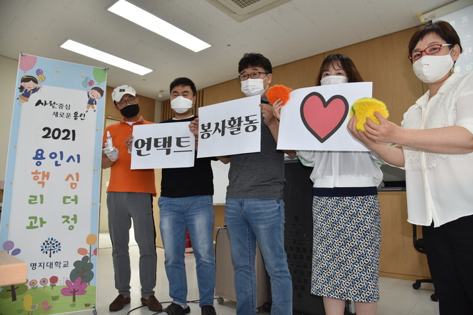 [용인신문] 용인시처인노인복지관(관장 김기태)은 지난 18일, 2021 용인시 핵심리더과정팀 25명과 함께 명지대학교 강의실에서 자원봉사활동을 진행했다.