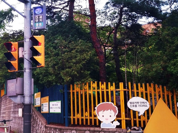 대일초등학교 앞 교차로에 설치된 미세먼지 알림 신호등