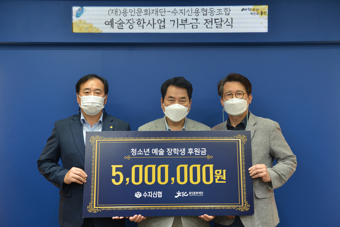 후원금 전달식에는 용인문화재단 백군기 이사장, 정길배 대표이사와 수지신협 이기찬 이사장이 참석했으며 청소년 예술 장학생 양성을 위한 아낌없는 지원을 약속했다.
