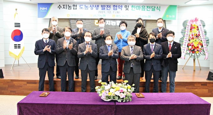 [용인신문] 수지농협(조합장 홍순용)은 지난 7일 도농상생 실천의 일환으로 농산물 산지 4개 농협과의 협약 및 한마음 전달식을 개최했다.