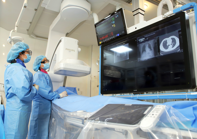 폐암의 진단과정에서 발견된 폐결절의 악성 여부를 확진하기 위해 투시 혹은 CT 유도 하 경피적 폐생검을 시행 후 최적의 치료방침을 결정한다.(폐암진단)