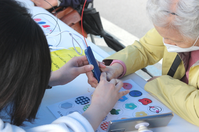 ‘괜춘한 놀eat터’에서 3D펜 활용 그립톡 제작을 체험 중인 이용고객