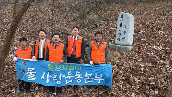 [용인신문] (사)처인구 물사랑 운동본부(공동 본부장 김승도·이건영) 발대식이 오는 12월 1일 오후3시 포곡읍 유운리 신일교회에서 개최된다. 발대식을 앞두고 지난 15일 이건영 공동 본부장 등 임원 6명이 경안천 발원지인 문수샘을 찾아 주변 청소 등 정화 활동을 펼쳤다.