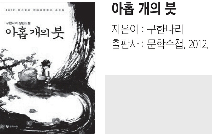 용인신문 | 저자 구한나리. 그는 수학교사이지만 글을 더 열심히 쓰는 것으로 보인다. 환상문학 웹진 《거울》(mirrorzine.kr)에서 활동하고 있는 저자가 오래 전 발표해 큰 상을 탔던 소설 『아홉 개의 붓』은 요즘 세태에 필요한 판타지 소설이기도 하다. 신분은 낮지만 세상을 다정함으로 보듬어줄 영웅, 깊은 슬픔과 분노를 위로해 주는 영웅, 희망을 꿈꾸게 해 주는 영웅이 소설 안에 유려한 우리말과 함께 녹아 있다.
