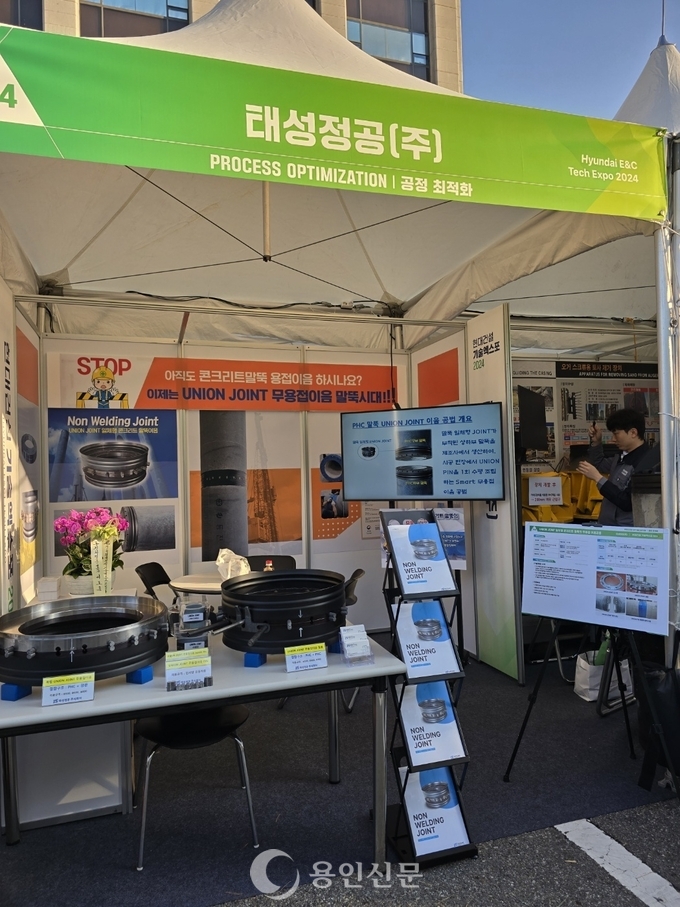 태성정공 신기술 부스가 현대건설 기술엑스포에서 주목을 받고 있는 모습