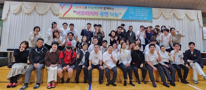 반딧불이 공연팀이 어우러지기 공연을 마치고 숨이 차면서도 마음 한 곳 뿌듯한 기분을 감추지 못한채 나도 해냈다는 마음으로 기념사진을 촬영하고 있다