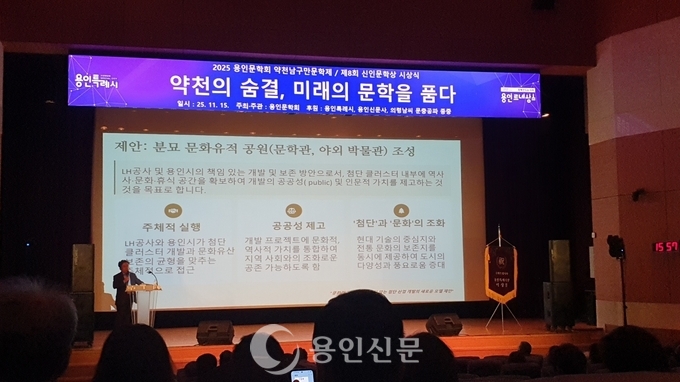 용인신문 | 용인문학회(회장 양석)가 주최한 2025 약천 남구만문학제 및 제8회 남구만 신인문학상 시상식이 지난 15일 용인시청 에이스홀에서 성황리에 개최됐다.