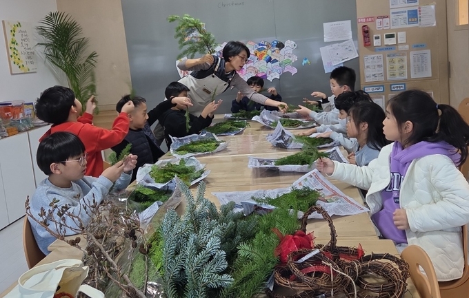 직접 만지고 느끼는 자연. 다함께 돌봄센터를 찾은 아이들이 겨울 원예 수업을 통해 생명의 소중함을 배우고 있다. 시는 맞벌이 가구의 돌봄 공백을 메우기 위해 정서 지원 프로그램도 확대 운영 중이다