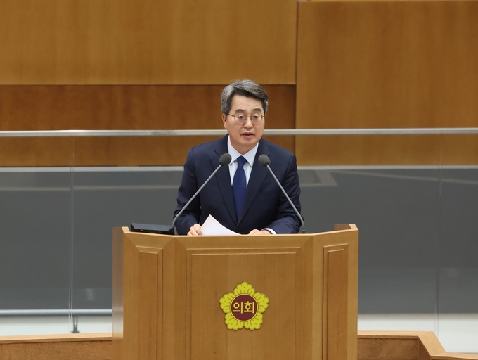 김동연 경기도지사가 도의회 본회의장에서 도정 질의에 대한 답변을 하고 있다. (경기도 제공)