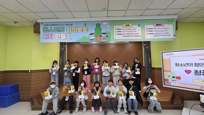 청정사회 활동 프로그램에 참석한 청소년들이 프로그램을 마치고 한층 성숙해진 모습으로 단체 사진을 촬영하고 있다